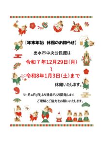 マルマエホール出水・マルマエ音楽ホール出水・中央公民館の開館時間